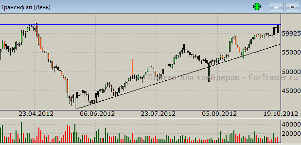 Привилегированные акции «Транснефти» рассмотрим подробнее. Ниже представлен дневной график котировок по состоянию на закрытие 19 октября.