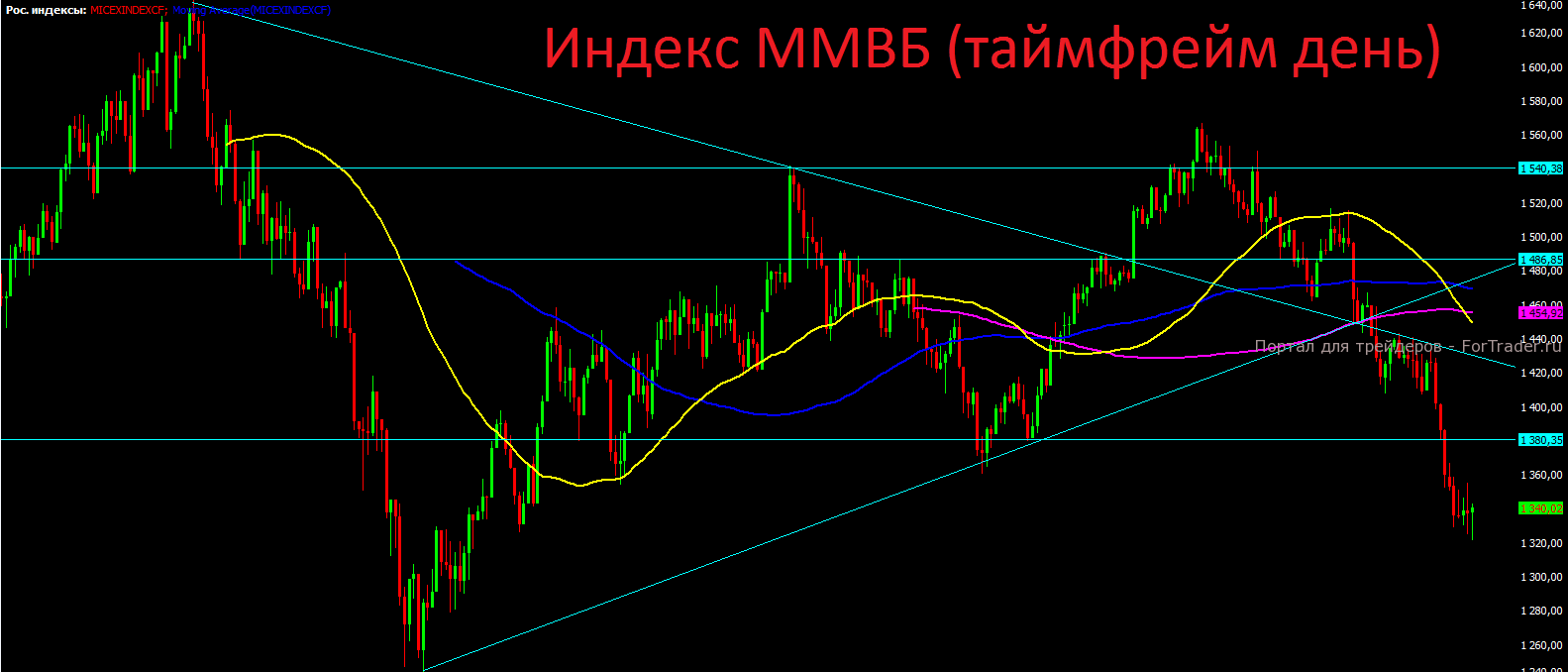 Индекс ММВБ уже четыре дня находится в боковике и закрывается вблизи нулевых отметок, тем самым снимая техническую перепроданность (так называемая плоская коррекция). Как мы видим, сил не хватает даже на отскок до важного уровня 1380 пунктов, что является не очень позитивным сигналом для инвесторов. Вывод напрашивается только один – раз не хотим расти, значит будем падать, как только появится иммунитет на негатив, так сразу можно будет покупать. Цели снижения на ближайшие 2-3 недели пока видятся прежние, до отметки 1250 пунктов. Если что то изменится, то будем пересматривать свой взгляд. Работать в отскок на любом откате стоит только после сильного закрытия дня.