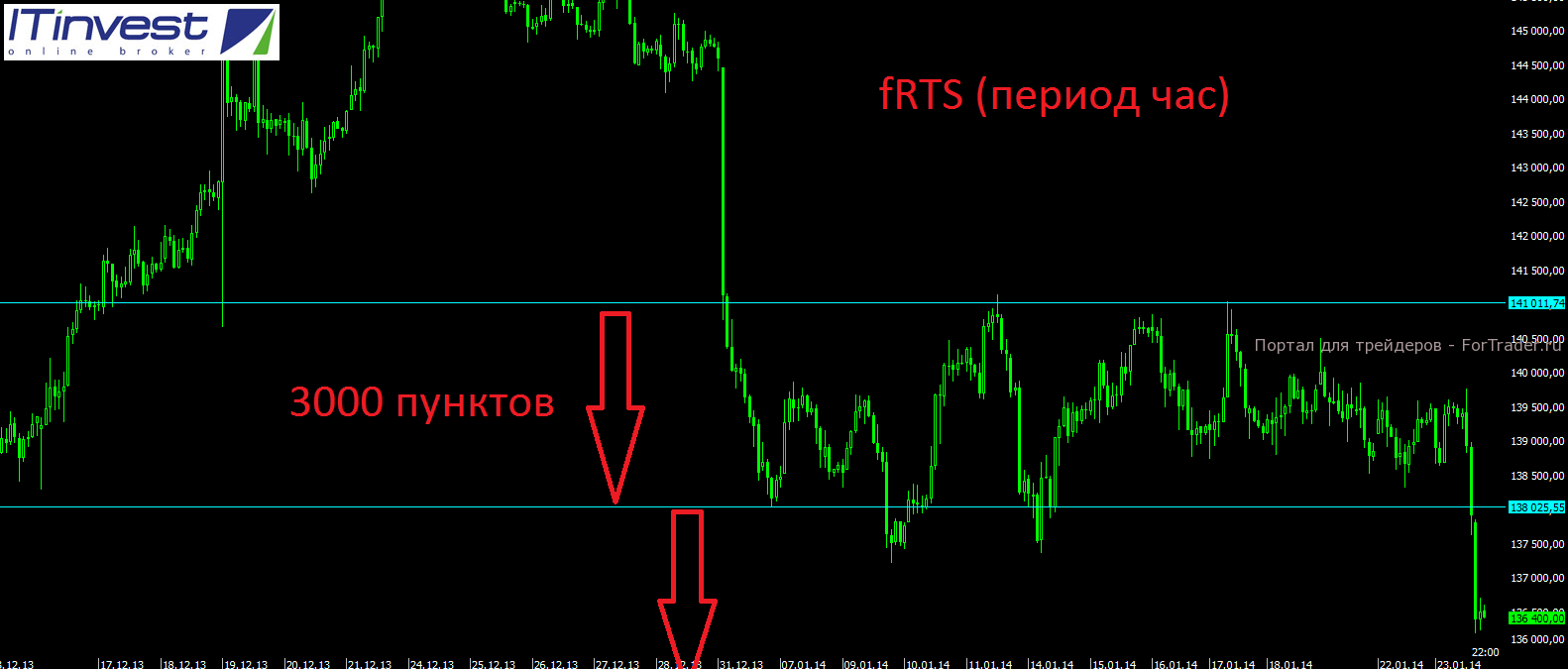 Российский индекс ММВБ в четверг всё же устоял и закрылся почти в нулях. Именно слабый рубль сейчас как нельзя кстати для отечественных экспортно-ориентированных компаний, поэтому они и дальше могут показывать устойчивость, если ситуация на глобальных рынках сильно не изменится. Сегодня открытие явно будет с потерями в пределах 1%, но на фоне позитивной динамики в Китае и по американским фьючерсам, шансы на отскок пока есть. А вот индекс РТС за счёт ослабления рубля выглядит весьма и весьма слабо. Если взглянуть на фьючерс на индекс РТС, то он, наконец, вывалился из диапазона 138000-141000 пунктов, в котором торговался на протяжении всего января. Как обычно бывает по классике, так и случилось. Чем дольше тянется консолидация, тем стремительнее из неё получается выход. Очень часто, в подобных случаях, выход из диапазона происходит на величину самого диапазона, т.е. на 3000 пунктов, до отметки 135000 пунктов, однако, судя по тому, что всё движение и съём стопов произошли в рамках вечерней сессии, есть всё же сегодня и здесь есть шансы на отскок и от отметки 136000 пунктов.
