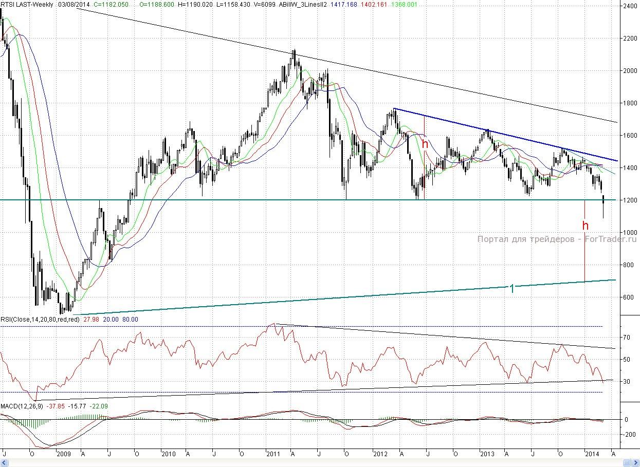 Но картина по индексу РТС очень негативная для них, так как в понедельник была пробита «ватерлиния» российского фондового рынка, которая находится на отметке 1200п. За два дня трещина неплохо подлаталась. И очень важно, чтобы по итогам недели быки полностью ликвидировали течь. Т.е. закрытие должно произойти выше 1200п. В противном случае индекс РТС пойдет на отметку ~700 п. Так что покупателям есть за что биться.