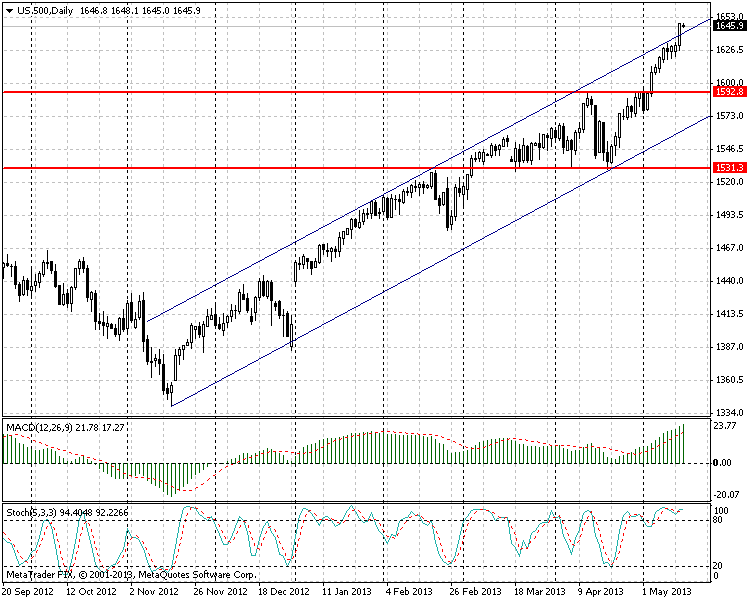 На фоне продолжающегося сезона публикации отчетов компаний в США за первый квартал 2013 года, по итогам которого большинство корпораций зафиксировали прибыль, основной фондовый индекс S&P 500 продолжает устремляться вверх.