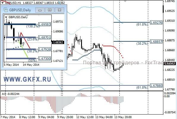 Пара GBPUSD возобновила снижение на росте доллара и даже не помогли ожидания сегодняшней статистики по Великобритании. Сделка по рекомендации не исполнилась. Сегодня дал бы рекомендацию на продажу, но из-за ожидающейся важной статистике по Великобритании, риск высок. На эту неделю традиционно рассматриваю два варианта возможного движения цены, основной красный и альтернативный зеленый. Значимые уровни на сегодня отмечены на часовом графике. Индикатор АО находится в отрицательной зоне и растет, указывая на коррекцию перед возможным продолжением снижения. Индикатор тренда указывает на снижение. Вне рынка.