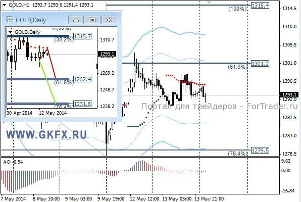 Цены на золото во вторник корректировались, формируя треугольник, выход из которого ожидаю вниз. События в Украине могут на время отойти на второе место, что даст возможность золоту снизиться в цене. Традиционно делаю два варианта движения цены на неделю, основной красный и альтернативный зеленый. Значимые уровни на сегодня отмечены на часовом графике. Индикатор АО находится у нуля, указывая на неопределенность. Индикатор тренда указывает на снижение. Преодоление уровня 1288,0 позволит продать с целями 1285,0, 1280,0 и 1277,0.