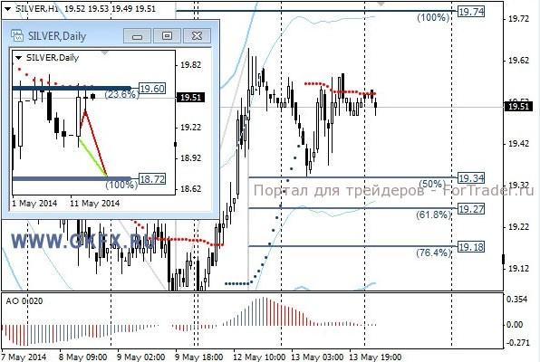 Цены на серебро также готовятся к снижению. Сегодня можно попытаться сработать вниз. Традиционно делаю два варианта движения цены на неделю, основной красный и альтернативный зеленый. Значимые уровни на сегодня отмечены на часовом графике. Индикатор АО находится у нуля, указывая на неопределенность. Индикатор тренда указывает на снижение. Преодоление уровня 19,45 позволит продать с целями 19,30, 19,15 и 19,05.
