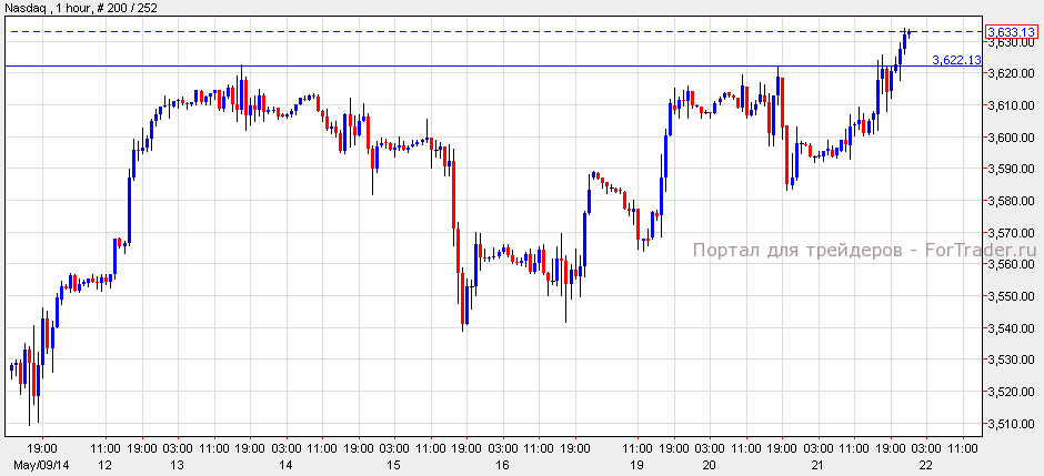 Американские индексы выросли, так как Федеральный Резерв США считает, что дальнейшее стимулирование не приведет к инфляции, а скорее понизит уровень безработицы в стране. Dow Jones вырос на 0.97%, S&P 500 вырос на 0.81%, a NASDAQ добавил к стоимости 0.85%. Согласно техническому анализу, NASDAQ торгуется над уровнем поддержки 3,620 и может вырасти к 3,650 пунктам. Тем не менее, при прорыве ниже линии поддержки индекс вновь начнет нисходящий импульс.