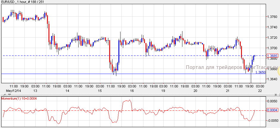 Евро усилился против доллара после выхода платежного баланса, который не оправдал ожиданий и составил 18.8 млрд против 24.2 млрд. Согласно техническому анализу 1-часового графика, пара вновь коснулась уровня поддержки 1.3650. Задержка выше этого уровня, с индикатором Моментум выше 0, может привести пару к отметке 1.3750. При прорыве уровня поддержки, евро/доллар вновь упадет к пунктам 1.3600.