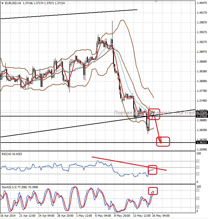 Продаем пару, если будет преодолен уровень 1.3700 с вероятной целью 1.3750.