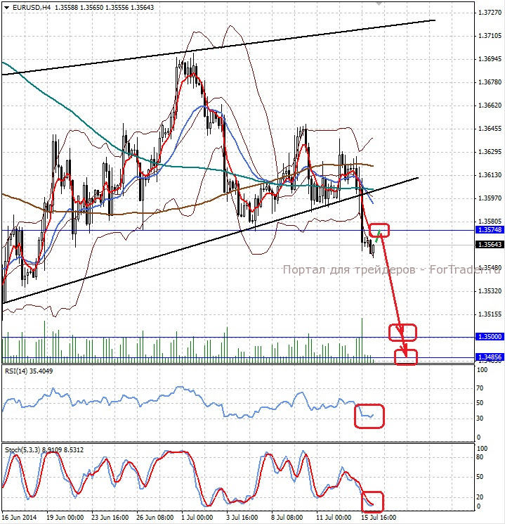 Продаем пару на росте, примерно от 1.3575-80 с локальной целью 1.3500, а при пересечении этого уровня с вероятной целью 1.3485.