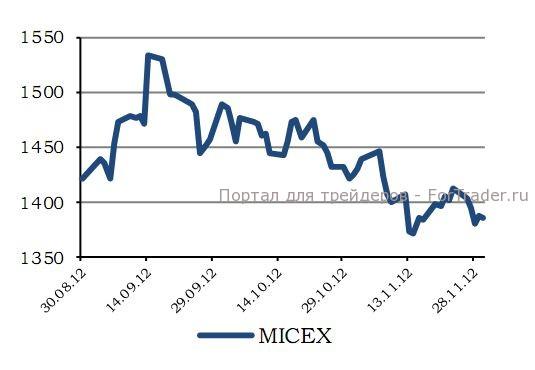 Внешний фон остается напряженным, но явно просматривается постепенное увеличение интереса инвесторов к риску. Цены на нефть последние часы стабильны, в результате активность в валютной паре доллар/рубль будет невысокой. Ожидаем, соотношение доллара и российской валюты будет находиться сегодня в пределах значений 30,80 – 31,00 рубля за доллар. Валютная пара евро/рубль будет находиться в диапазоне 40,00 – 40,10 рубля за евро. Индекс ММВБ сегодня может продолжить свой рост и достичь отметки 1400 пунктов.