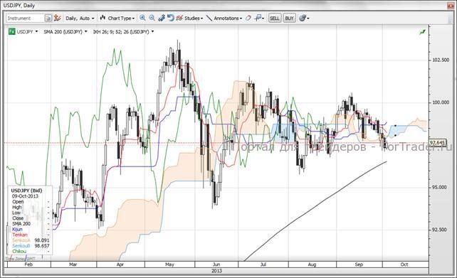 Для пары доллар/иена эпопея дневного облака Ишимоку не заканчивается, где пространство для восходящего движения к облаку немного больше, поскольку проходит ближе к уровню 98,00. Этот важный технический уровень определит, продолжится ли распродажа.
