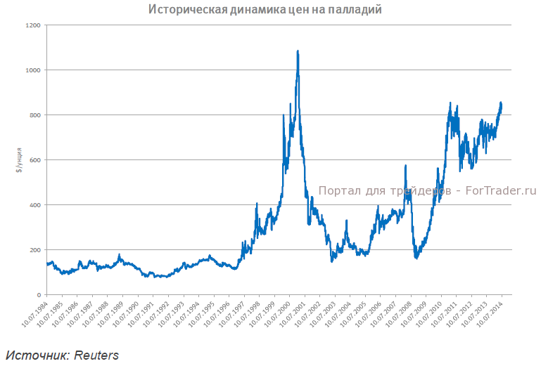 Рынок палладия вслед за растущей платиной установил новый максимум на уровне 855,85$ и после небольшой коррекции продолжает рост.