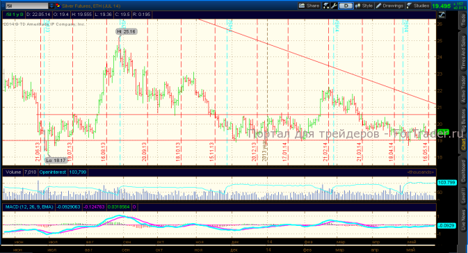 Ближайшие уровни поддержки в серебре – 19,20-18,9$, уровни сопротивления – 19,55-20,2$.