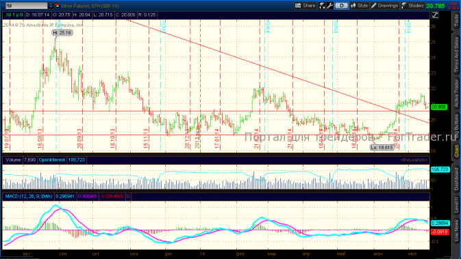 Рынок серебра под влиянием снижения цен на золото опустился ниже уровня 21$ и пытается протестировать уровень поддержки 20,5$, от которого позиции металла улучшаются. Инвестиционный спрос оживился с падением цен, что поддерживает рынок серебра. Сезонность действует на рынок негативно.