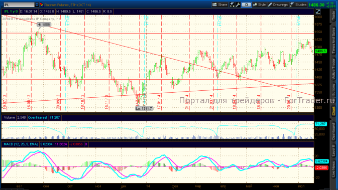 Ближайшие уровни поддержки в платине – 1475-1480$, уровни сопротивления 1500-1525$.