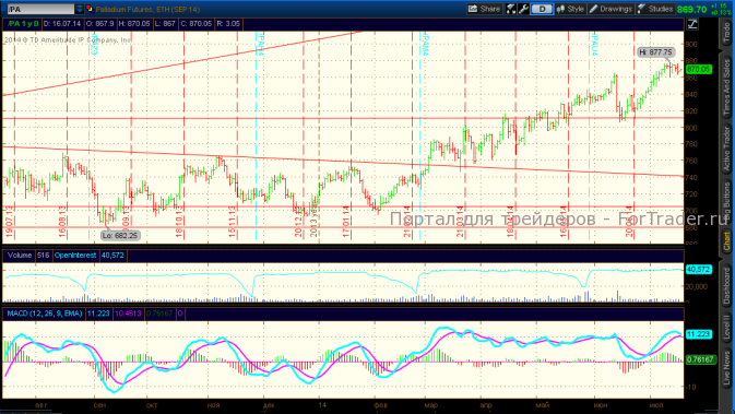 Ближайшие уровни поддержки в палладии – 865-850$, уровни сопротивления 880-900$.