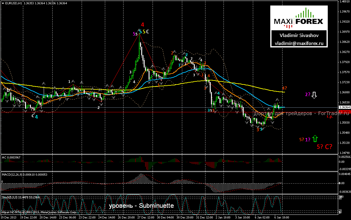 В нашем прогнозе на вторник, предполагаем – продолжение и завершение коррекционного подъёма пары, ориентировочно, в ценовой зоне 1.3650 ÷ 1.3685.