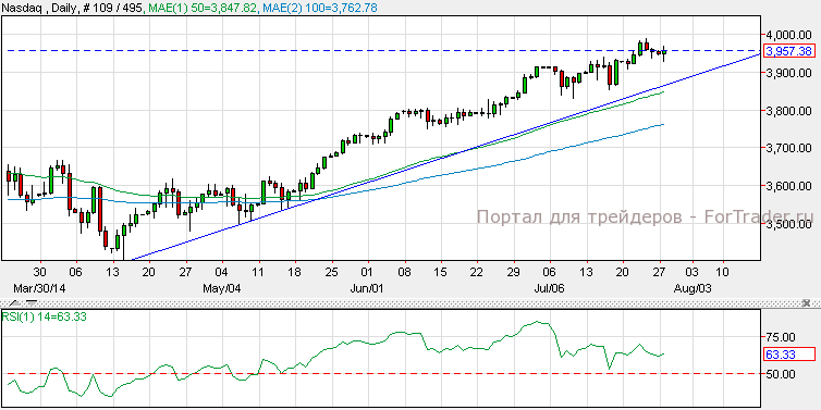 Фондовый рынок США завершил торги в зеленой зоне. NASDAQ добавил к стоимости 0.05%, Dow Jones вырос на 0.13%, а S&P 500 вырос на 0.03%. Согласно техническому анализу дневного графика, NASDAQ удержал линию восходящего тренда и торгуется выше уровня поддержки 3,900. Индекс относительной силы находится на отметке 63 и также указывает на восходящий тренд. Прорыв ниже уровня поддержки может привести индекс к следующему уровню поддержки на отметке 3,820, а задержка выше поднимет индекс к отметке 4000.