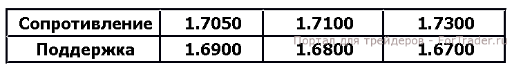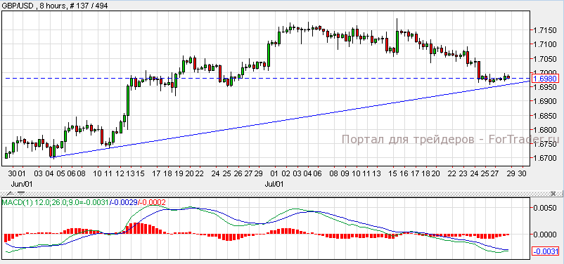 Фунт завершил торговую сессию без изменений против основных валют. Согласно техническому анализу 8-часового графика, пара GBP/USD торгуется в нисходящем канале с уровнем поддержки 1.6900 и уровнем сопротивления 1.7300. Индикатор MACD указывает на восходящий тренд к следующему уровню сопротивления 1.7100. Прорыв ниже уровня поддержки 1.6900 приведет пару к отметке 1.6800. Чистый объем кредитов, выданных физическим лицам, ожидается на уровне 2.6 млрд против 2.7 млрд ранее.