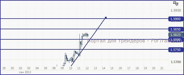 На вчерашней сессии доллар продолжил падать (инвесторы уже не переживают из-за Сирии столь сильно и возвращаются в риск, но, всё же, вероятно, ненадолго). GBP/USD выстрелил ростом почти в 100 пунктов (сильная статистика по безработице поддержала заметный позитив последних индексов PMI).