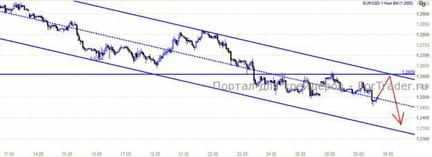 С технической стороны, ожидание продолжения нисходящего движения с целью 1,2400. Предпочтение продавать от 1,2600.