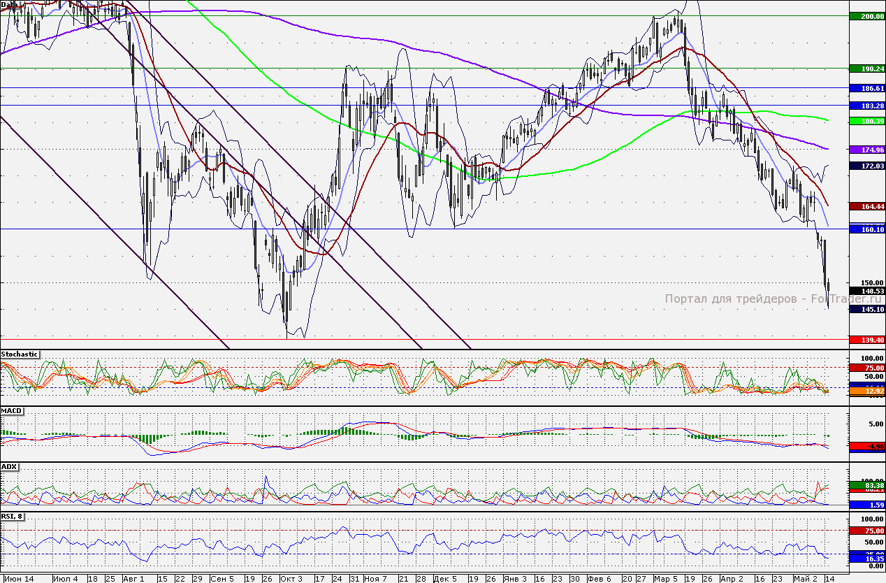 Ближайшие уровни сопротивления: 150,00/155,00/160,00/160,59