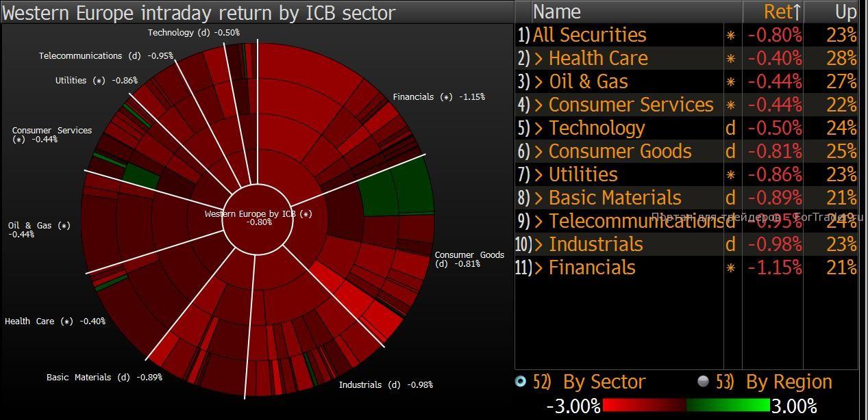 Вчерашнее закрытие торгов в Европе (по секторам)