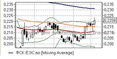 ФСК ЕЭС (+1,83%) – акции, несмотря на вчерашнюю просадку ближе к средней полосе Боллинжера дневного графика и линии EMA55 (район 0,209 руб), смогли устоять выше линии EMA100 (0,215 руб), от которой сегодня идут наверх, стремясь к линии EMA200 (0,231 руб) и преодолев максимум конца прошлого года (район 0,22 руб).Технические индикаторы дают умеренно оптимистичные сигналы, не исключая развития восходящего движения и говоря о наличии у бумаг потенциала роста до входа в зону перекупленности. Как минимум до пробития отметки 0,215 руб краткосрочные «длинные» позиции стоит сохранять.