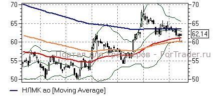 НЛМК (+0,73%) – акции после падения в район ряда «долгих» скользящих средних дневного графика (60,3-61 руб) стремятся к восстановлению своих значений, однако, потенциал краткосрочного роста даже в случае сохранения благоприятного внешнего фона может быть ограничен уровнем 63,5 руб (линия EMA200 и средняя полоса Боллинжера). Силы «быков» в целом невелики, а ухудшение внешнего фона вполне может привести к возвращению в район локальных минимумов.