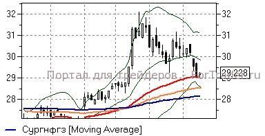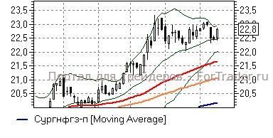 Сургутнефтегаз ап (+2,06%) – акции после коррекции в район средней полосы Боллинжера дневного графика (22,5 руб) начали восстановление утерянных отметок, а технические индикаторы при этом дают умеренно положительные сигналы, не исключая развития роста. Пока бумаги остаются выше 22,5 руб, имеет смысл сохранять «длинные» позиции, рассчитывая на возвращение котировок к годовым максимумам, однако, закрепление ниже говорило бы о рисках ускорения темпов падения.