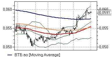 ВТБ (+0,12%) – акции на прошлой неделе обновили максимальное с конца прошлого года значение, протестировав отметку 6 коп, после чего скорректировались с достигнутых вершин. Сегодня бумаги пытаются отыграть часть утерянных позиций, однако, по-прежнему расположены в зоне перекупленности, а индикаторы дневного графика указывают на уменьшение сил «быков» в краткосрочном периоде. Открытие новых «длинных» позиций от текущих отметок является опасным ввиду рисков развития коррекции, первым сигналом чего послужила бы неспособность бумаг устоять выше 5,90 коп.