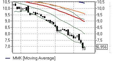 ММК (+1,3%) – акции совершают отскок от многолетних минимумов, по-прежнему находясь в зоне перепроданности и выглядя весьма слабо. Технические индикаторы дают негативные сигналы, не исключая скорого возвращения бумаг к падению. Положительным сигналом выступила бы их способность устоять выше пробитого сегодня сопротивления 6,88 руб. В этом случае шансы движения в район 7-8 руб (средняя полоса Боллинжера дневного графика) увеличились бы.