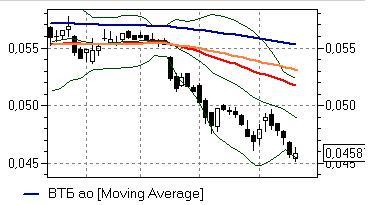 ВТБ (+0,61%) – акции пытаются развить движение наверх после достижения очередных минимумов и при этом сформировали «бычью» дивергенцию с RSI на дневном графике. Технические индикаторы дают преимущественно негативные сигналы, предупреждая о необходимости подтверждения намерения «быков» продолжить отскок как минимум в виде закрепления выше сопротивления 4,6 коп. В обратном случае шансы возвращения к нисходящему движению значительно возрастут.