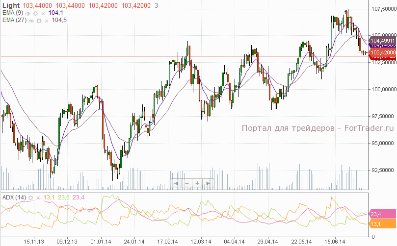 В Ираке ситуация не изменилась. Основные события по-прежнему происходят на севере страны. Таким образом, в течении дня нефтяные котировки будут торговаться вблизи текущих уровней. Нефть WTI останется в пределах $103,1-104,5 за баррель, Brent на уровне $109,7-111 за баррель. Такая ситуация продлится до среды, к этому моменту и внешний фон может измениться, и подоспеет статистика от Американского института нефти.