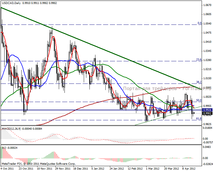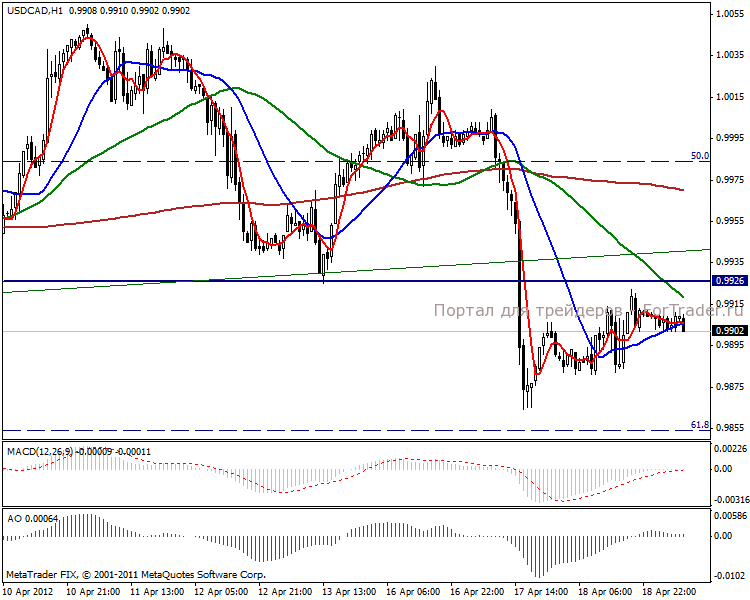 На часовом графике видим коррекцию к линии сопротивления в отметке 0.9926 пунктов. Краткосрочная тенденция в нисходящем направлении, поэтому перспектива в отметке 0.9855 пунктов и ниже.