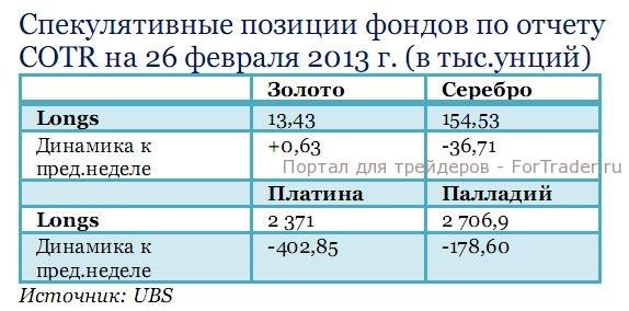 По отчету COTR длинные позиции в золоте немного подросли, а в остальных металлах продолжали снижаться. Особенно сильное падение после продолжительного роста показали позиции в платине.