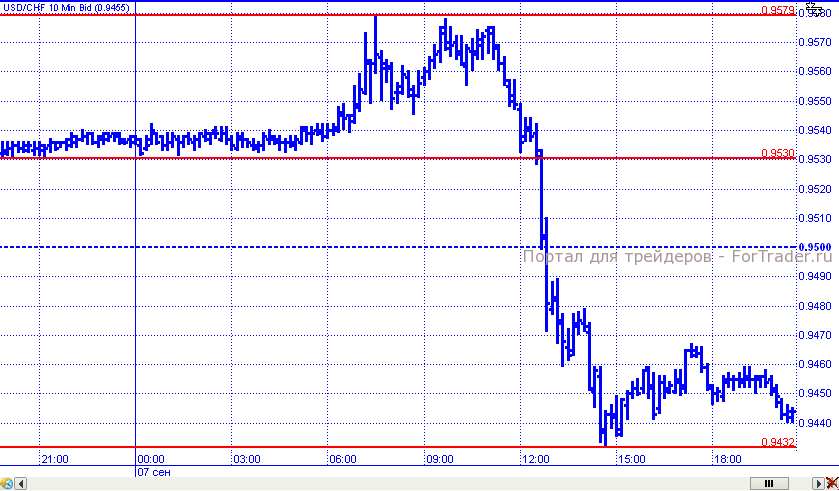 Не отставал от прочих валют и франк, который воспользовавшись слабостью доллара, по итогам торговых суток в пятницу смог укрепиться. Хотя в начале дня цены поднимались до отметки 0,9579. Но впоследствии пара развила нисходящее движение, преодолела поддержку 0,9500 и 0,9450, отметив внутридневной минимум на 0,9432.