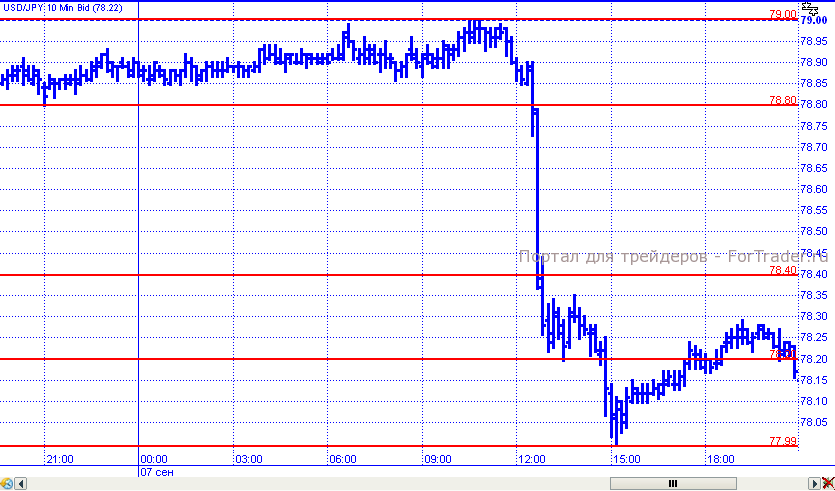 Пара доллар/иена в пятницу день начала спокойно, консолидируясь в узком диапазоне 78,80 – 79,00. Но на американской сессии, несмотря на всю нежелательность укрепления, японская валюта преодолела поддержку 78,80 и пара продолжила падение, в рамках которого прошла еще несколько уровней поддержки, отметив внутридневной минимум на 77,99. К закрытию недели цены вернулись к отметке 78,20.