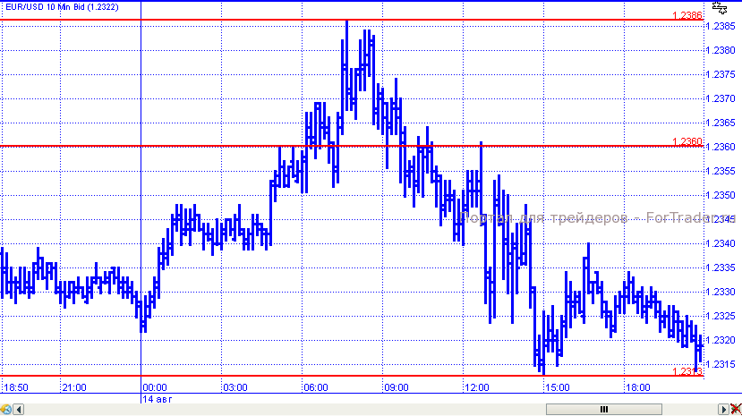 Торговые сутки во вторник евро/доллар начал ростом. Цены в рамках восходящего движения преодолели сопротивление 1,2360 и продолжили подъем, который вновь был сдержан уровнем 1,2385 (максимум дня зафиксирован на 1,2386) за чем последовало падение, отчасти спровоцированное слабой собственной и позитивной американской макроэкономической статистикой. Цены закрепились ниже уровня 1,2330 и завершили день в районе минимума на 1,2313.