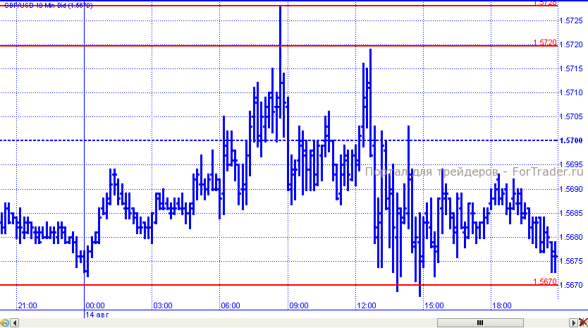 Фунт/доллар провел торговые сутки в пределах диапазона. День пара начала ростом, в рамках которого поднялась до сопротивления 1,5720 и даже смогла «проколоть» его, отметив максимум на 1,5728. Но впоследствии цены все же начали падение и вернулись к поддержке 1,5670, которую пройти также не удалось.