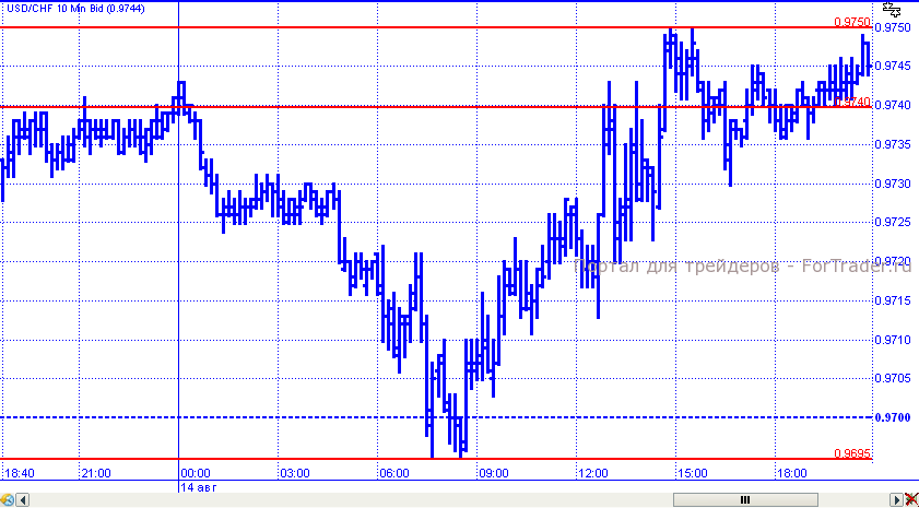 Пара доллар/франк начала торговые сутки с падения. Цены протестировали поддержку 0,9700, но не слишком удачно. Ниже отметки 0,9695 пара так и не ушла. Более того, от казанного уровня доллар/франк начал рост и смог закрепиться выше сопротивления 0,9740. День пара завершила в районе достигнутого максимума на уровне 0,9750.