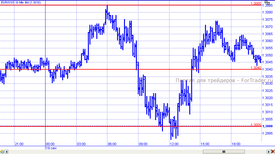 В среду пара евро/доллар не продемонстрировала однозначности. В начале торговых суток цены устремились вверх и достигли локального максимума на уровне 1,3085, оттолкнувшись от которого начали снижение к поддержке 1,3040. Этот барьер был пройден под влиянием новостей из Германии и пара продолжила падение, в рамках которого протестировала уровень 1,3000. Этот барьер достаточно сильный, поэтому преодолеть его не удалось и пара вернулась к сопротивлению 1,3070. Но к завершению торговых суток снова откатилась в район 1,3040.