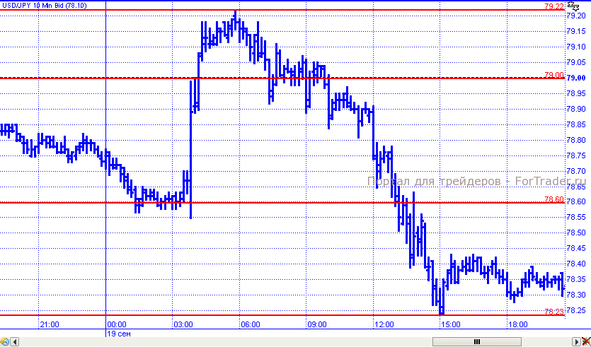 В среду пара порадовала движениями. В начале торговых суток доллар/иена откатилась к поддержке 78,60, но пройти ее так и не смогла. После решения Банка Японии по монетарной политике цены резко подскочили вверх и отметили максимум на уровне 79,22. Однако удержаться на достигнутых уровнях так и не смогли, тем более, что слухи из Германии спровоцировали бегство от рисков. Пара преодолела поддержку 78,60 и продолжила движение вниз, отметив, минимум на 78,23, от которого к завершению торговых суток откатилась к уровню 78,35.