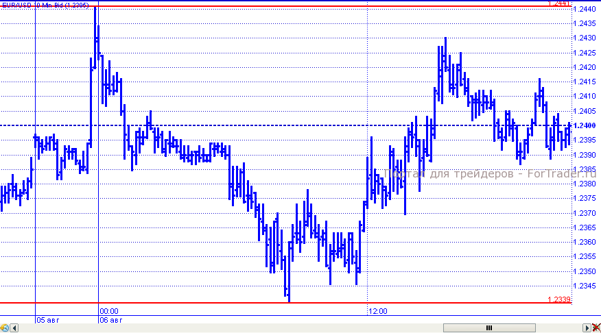 В понедельник пара демонстрировала разнонаправленные движения в пределах диапазона. Динамика пары была ограничена уровнями 1,2339 – 1,2441 (к верхней границе цены подскочили в самом начале дня) после чего развили падение, которое выглядело вполне логичной коррекцией после пятничного роста. Но во второй половине дня цены еще раз попытались закрепиться выше 1,2400, но неудачно.