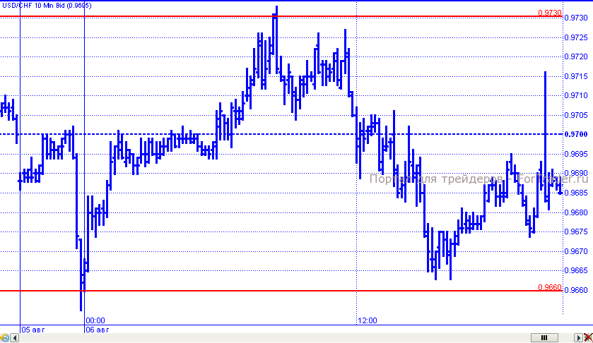 Во вторник цены, скорее всего, по-прежнему будут оставаться под влиянием динамики пары евро/доллар. Поэтому возможно, что цены попытаются закрепиться выше уровня 0,9700. Следующее сопротивление отмечено на 0,9740 и 0,9770. Поддержка находится на уровне 0,9670/0,9660, 0,9640 и 0,9600.