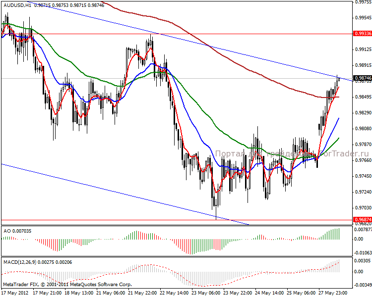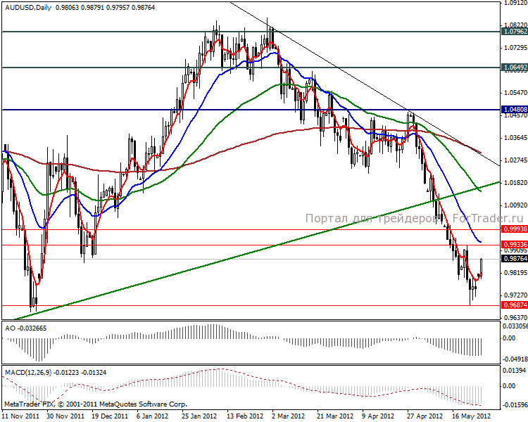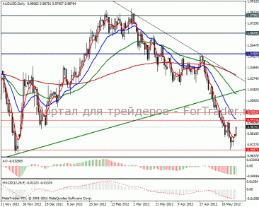 Начало торговой недели по паре aud/usd началось незначительным укреплением австралийца. В связи с торможением производства в КНР, спадом потребления в Европе и замедления темпов восстановления экономики США страдает экспортная политика Австралии. В этом месяце РБА понизил процентную ставку в стране сразу на 50 базисных пунктов, к отметке 3.75% годовых. Резервный банк объяснил свои активные шаги инфляцией. Снижение стоимости кредитования в стране должно поддержать все основные сектора экономики. Так работа монетарных властей отлично видна в секторе занятости, апрельский уровень безработицы сократился с 5.2% до 4.9%, а число рабочих мест увеличилось на 15 тыс.