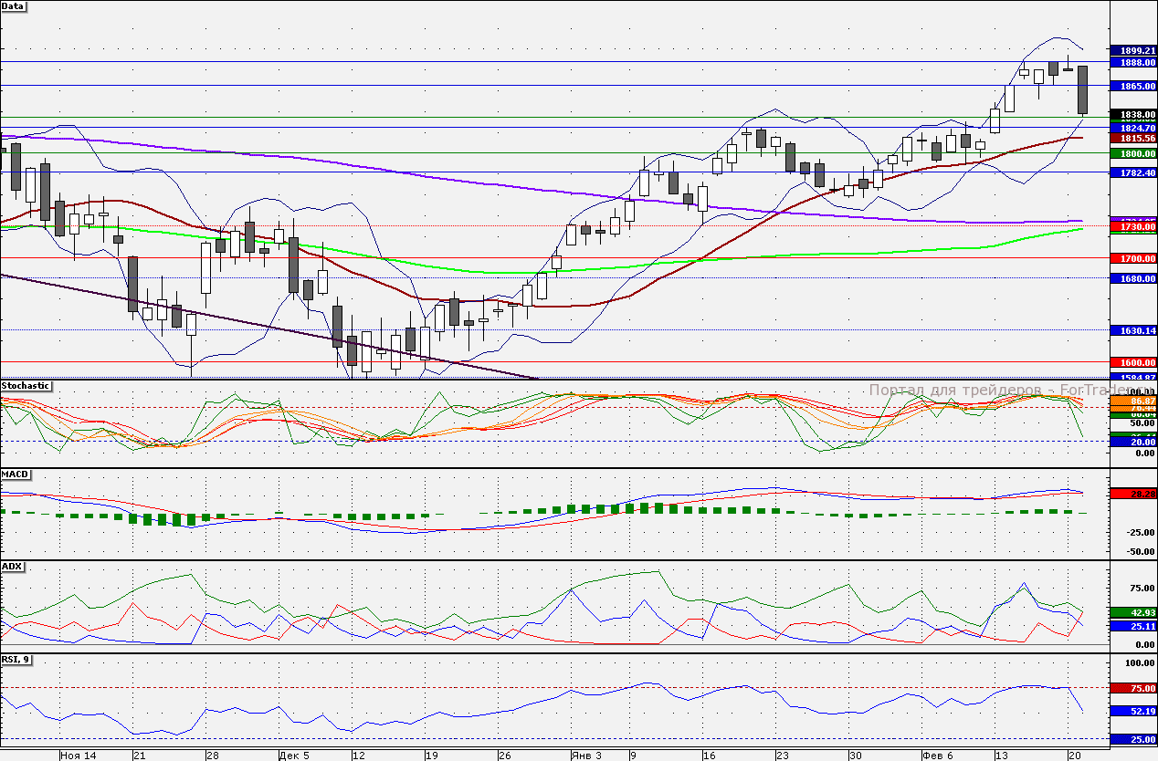 Ближайшие уровни сопротивления: 1850,00/1860,00/1888,00/1900,00