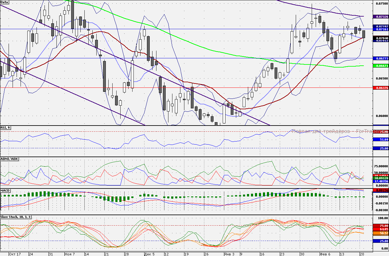 Акции банка накануне завершили торговую сессию на пересечении 10- и 21-дневных скользящих средних. Акции могут отскочить в район 7,160 коп. От сопротивления спекулятивные «лонги» стоит прикрывать.