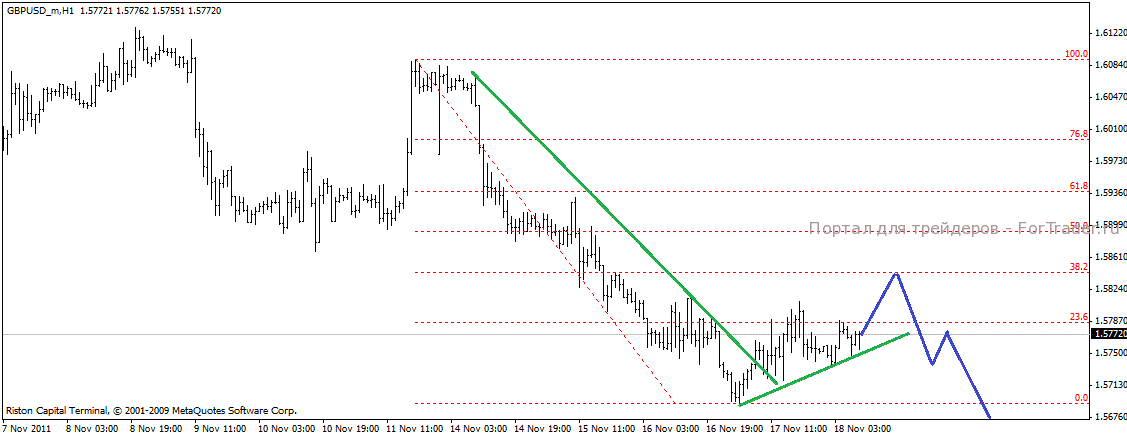 Фунт также формирует коррекцию двигаясь плавно вверх. Очевидно нас ждет рост пары к уровню 38.2% фибо откуда цена развернется и возобновит свое стремительное снижение.