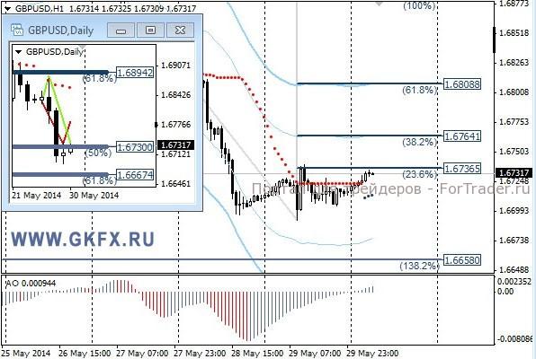Пара EURUSD корректировалась после двух дней падения, закрыв сделку по рекомендации. Закрытие сделки произошло не по третьей цели, а по стопу с прибылью 15 пунктов. Вчерашняя коррекция по паре может отражать частичную фиксацию коротких позиций. Не смотря на вчерашнюю слабую статистику по ВВП США, ожидаю продолжения снижения пары. На эту неделю традиционно рассматриваю два варианта возможного движения цены, основной красный и альтернативный зеленый. Значимые уровни на сегодня отмечены на часовом графике. Индикатор АО находится у нуля, указывая на неопределенность. Индикатор тренда указывает на рост. Вне рынка.