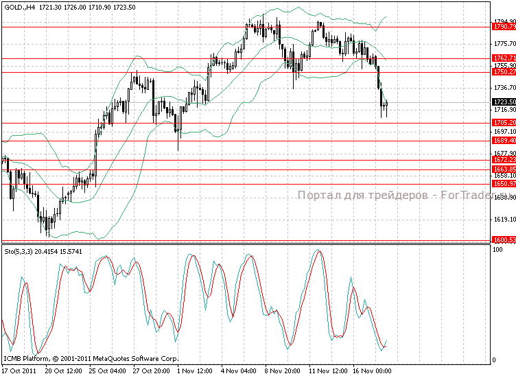 Инвесторы проявляют интерес к долговому рынку в большей степени, чем к сырьевым активам. Несколько торговых сессий подряд увеличивается спрос на USD. Золото может перейти в зону поддержки 1705,0-1723,00, Можно рассматривать покупки из этого района с целью 1750,00.